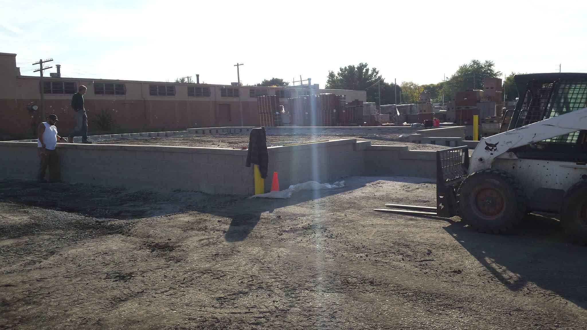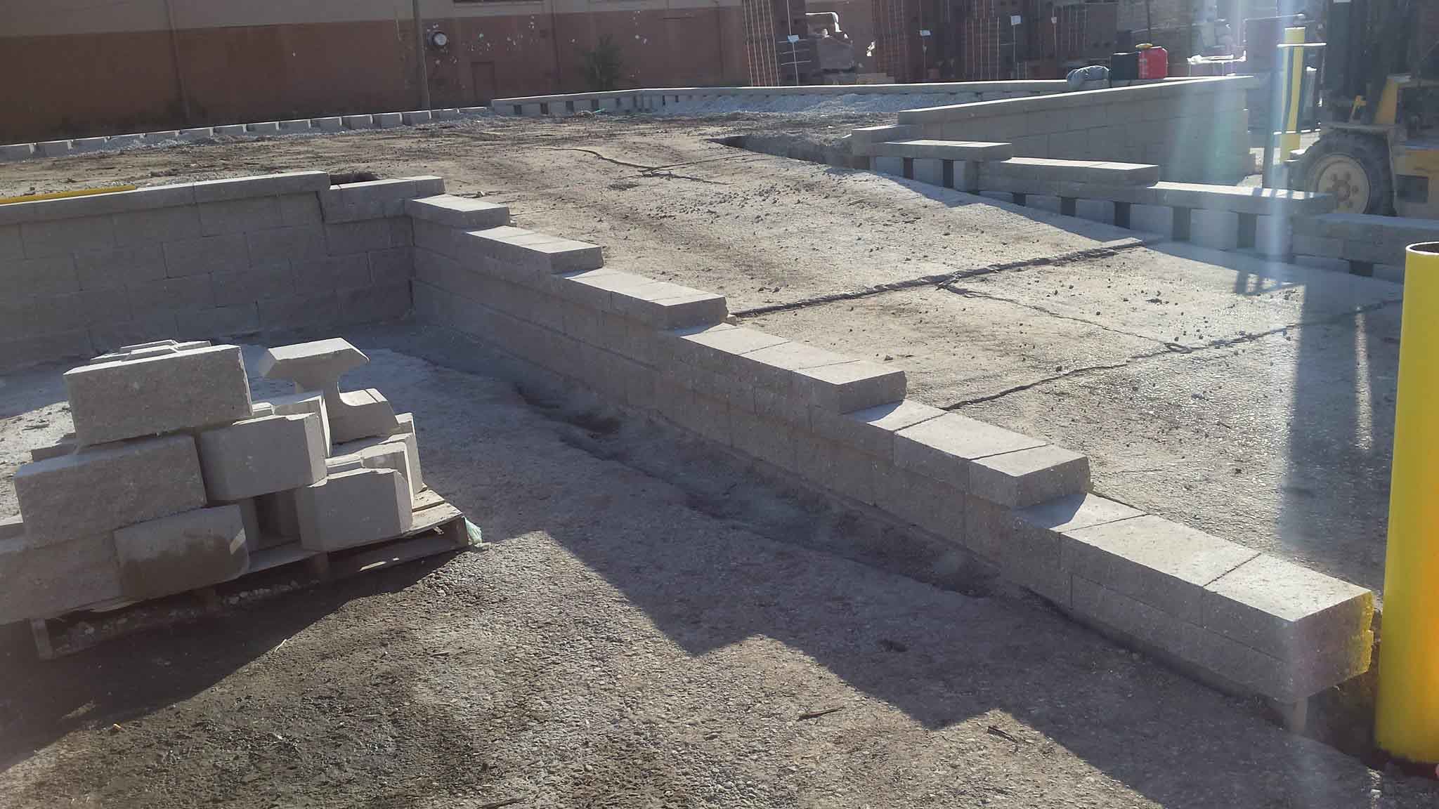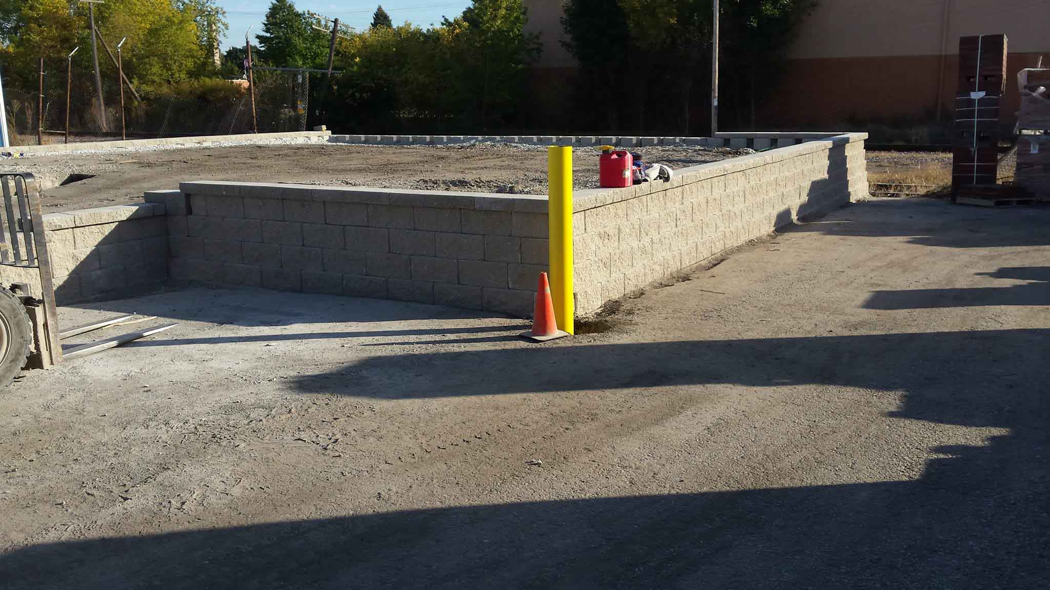 This project was railroad tie removal followed by the construction of a segmental block wall. This raised area is used for loading and unloading of rail cars for this company.