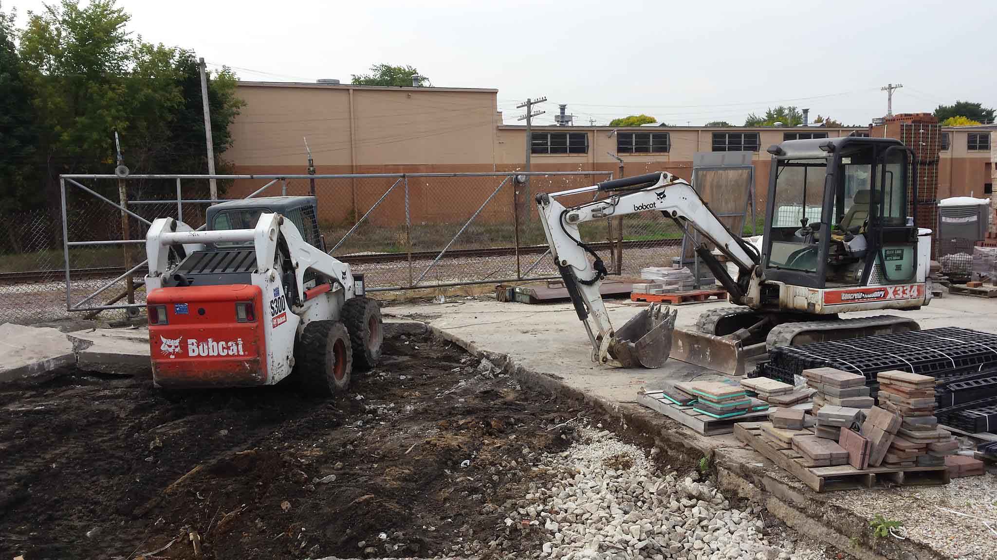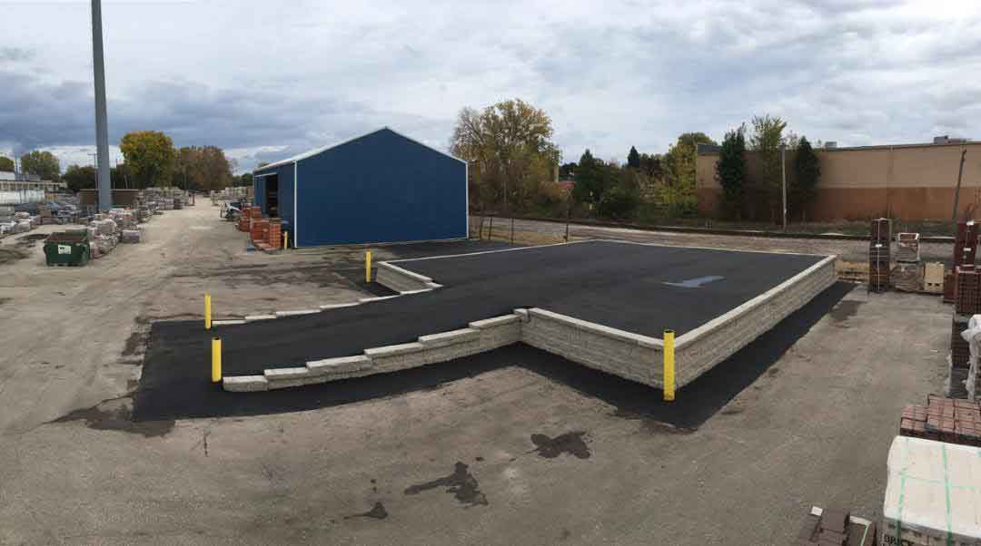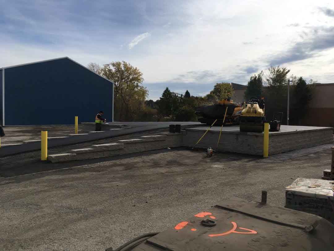 This project was railroad tie removal followed by the construction of a segmental block wall. This raised area is used for loading and unloading of rail cars for this company.