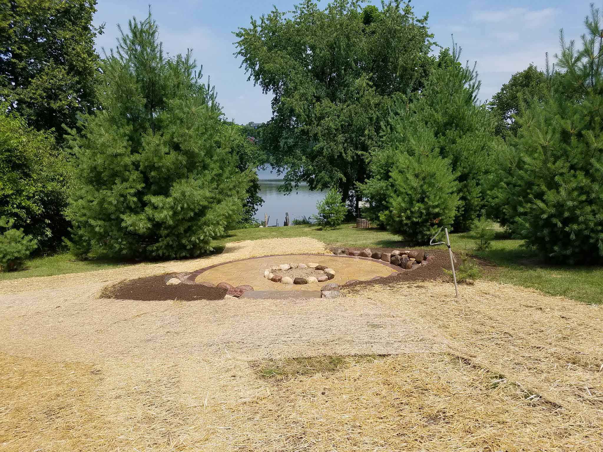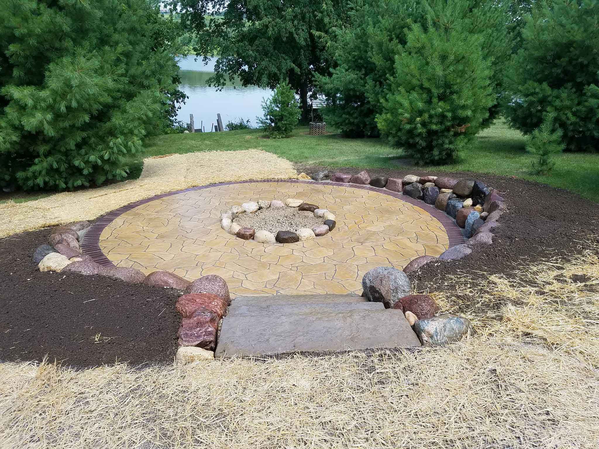 Another hot week and another project completed for the weekend. Beautiful setting on Neosho Mill Pond for this fire pit!