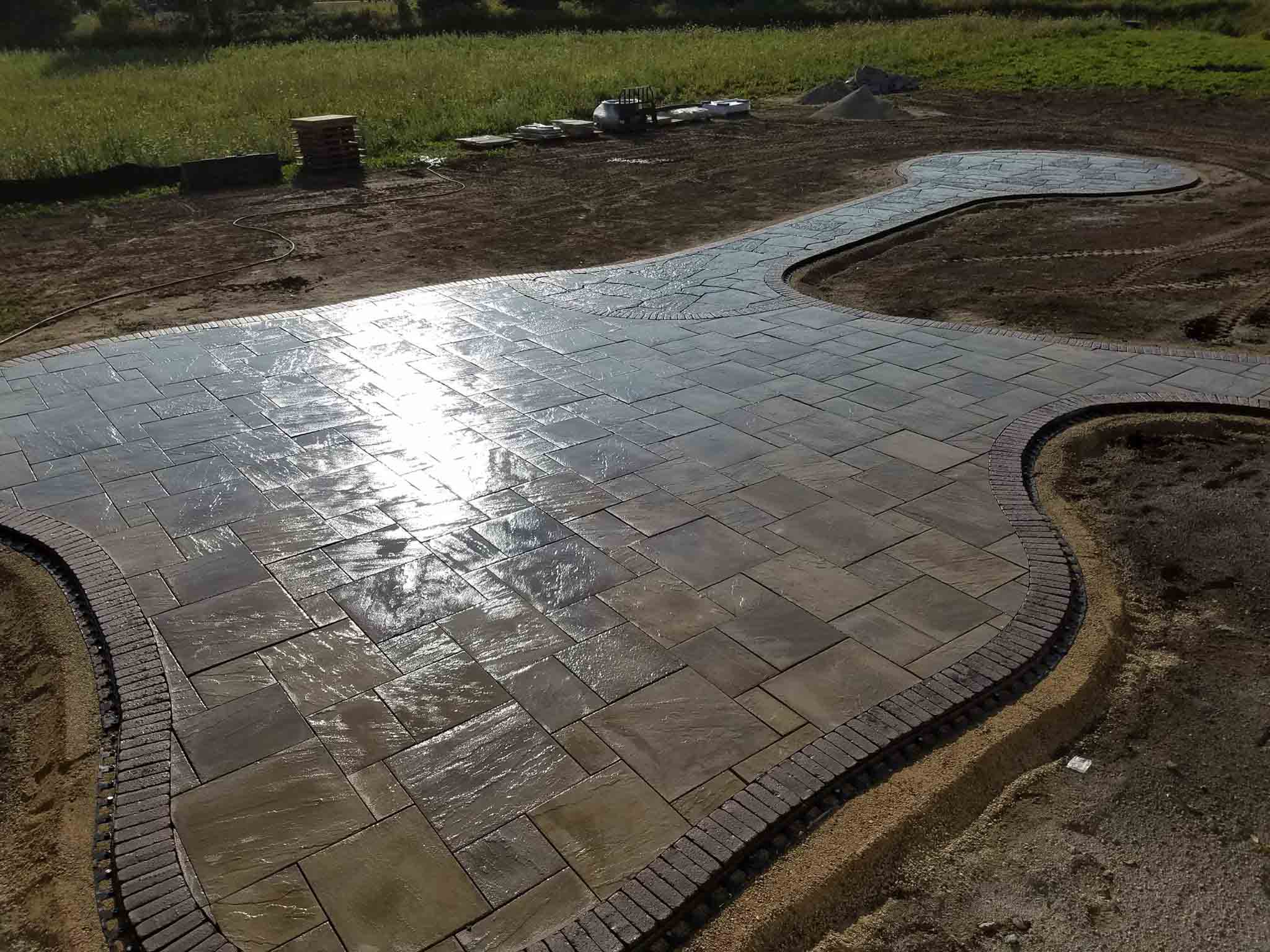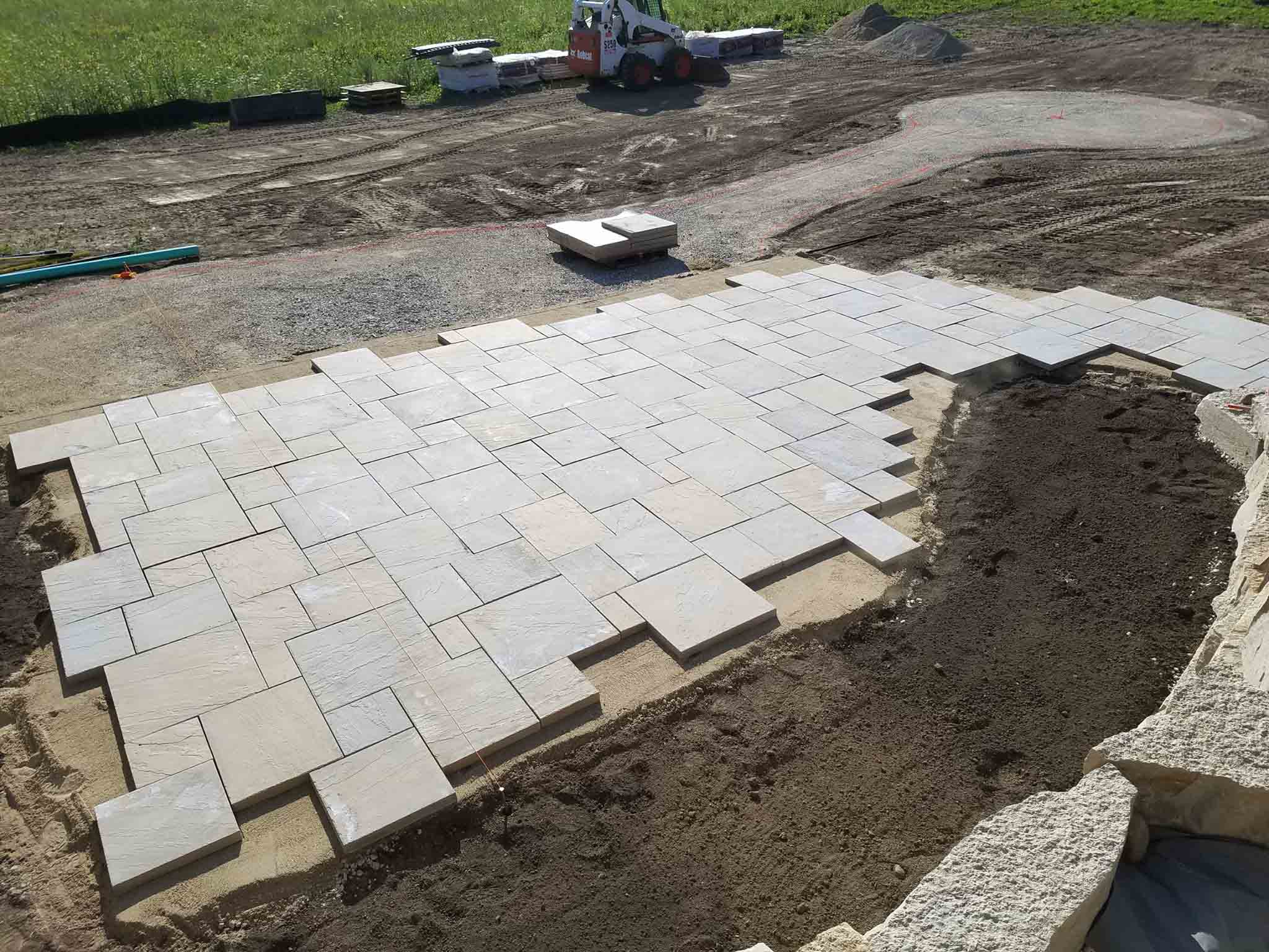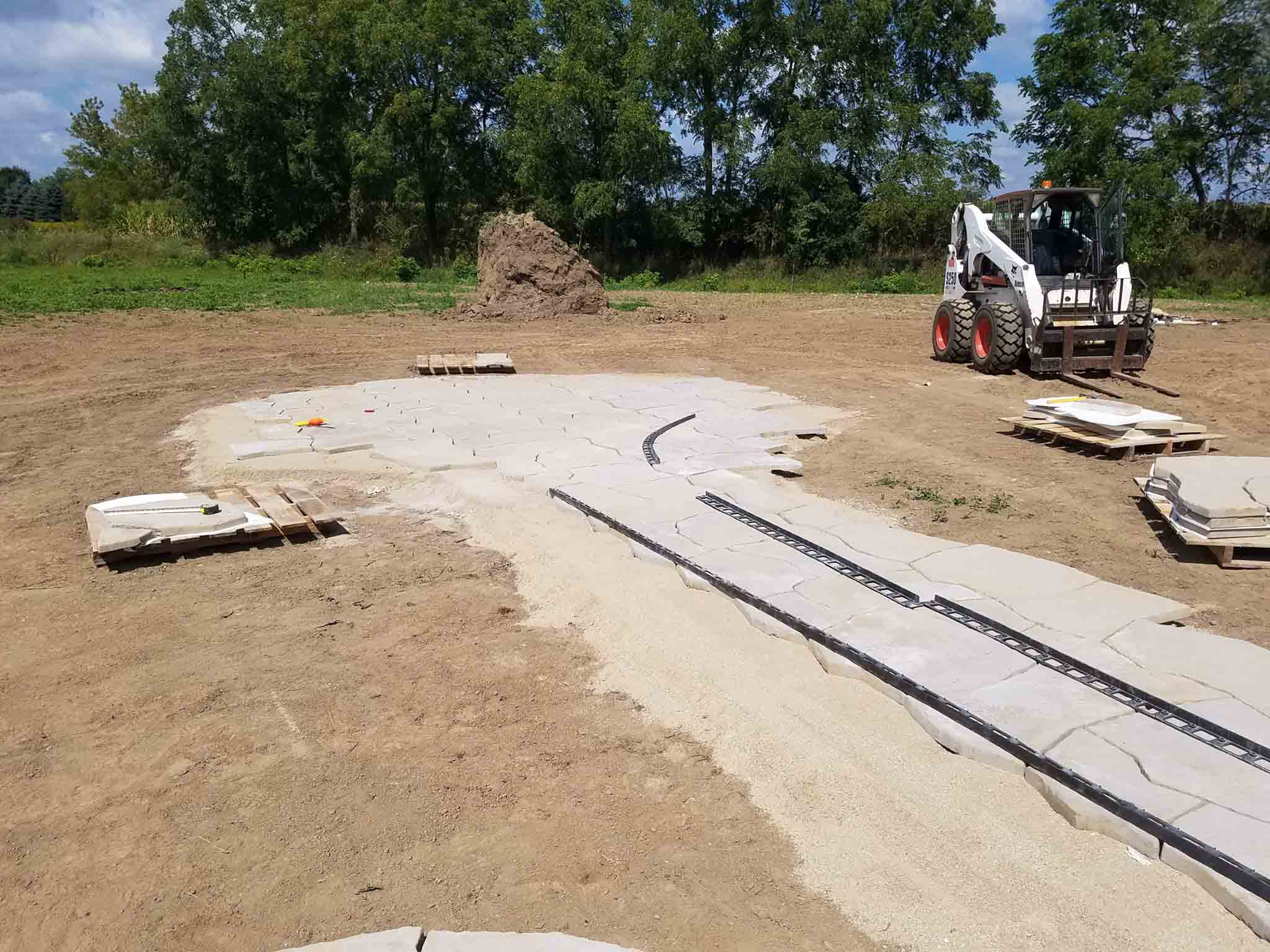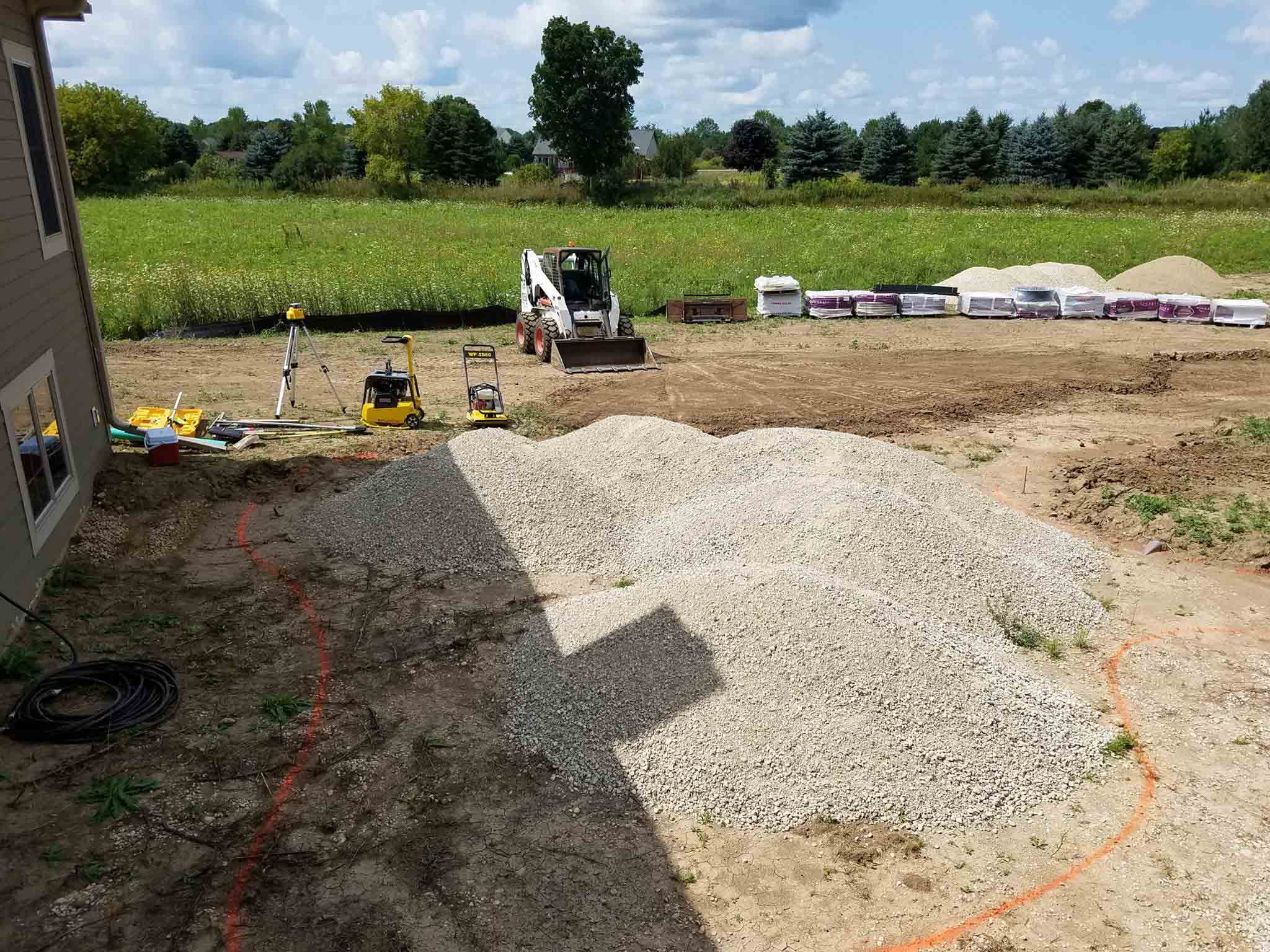 The start to another Rosetta Stone patio and fire-pit project. We love working with this product. Very natural look and amazing product to install. It all starts with some excavating, 48 tons of crushed stone, and 13 pallets of paver materials. It will be right around 900 sq. ft. when completed. We’ll post pics as we move forward on the project. As always, thanks to The Brickyard for getting our materials on-site ahead of our start date.